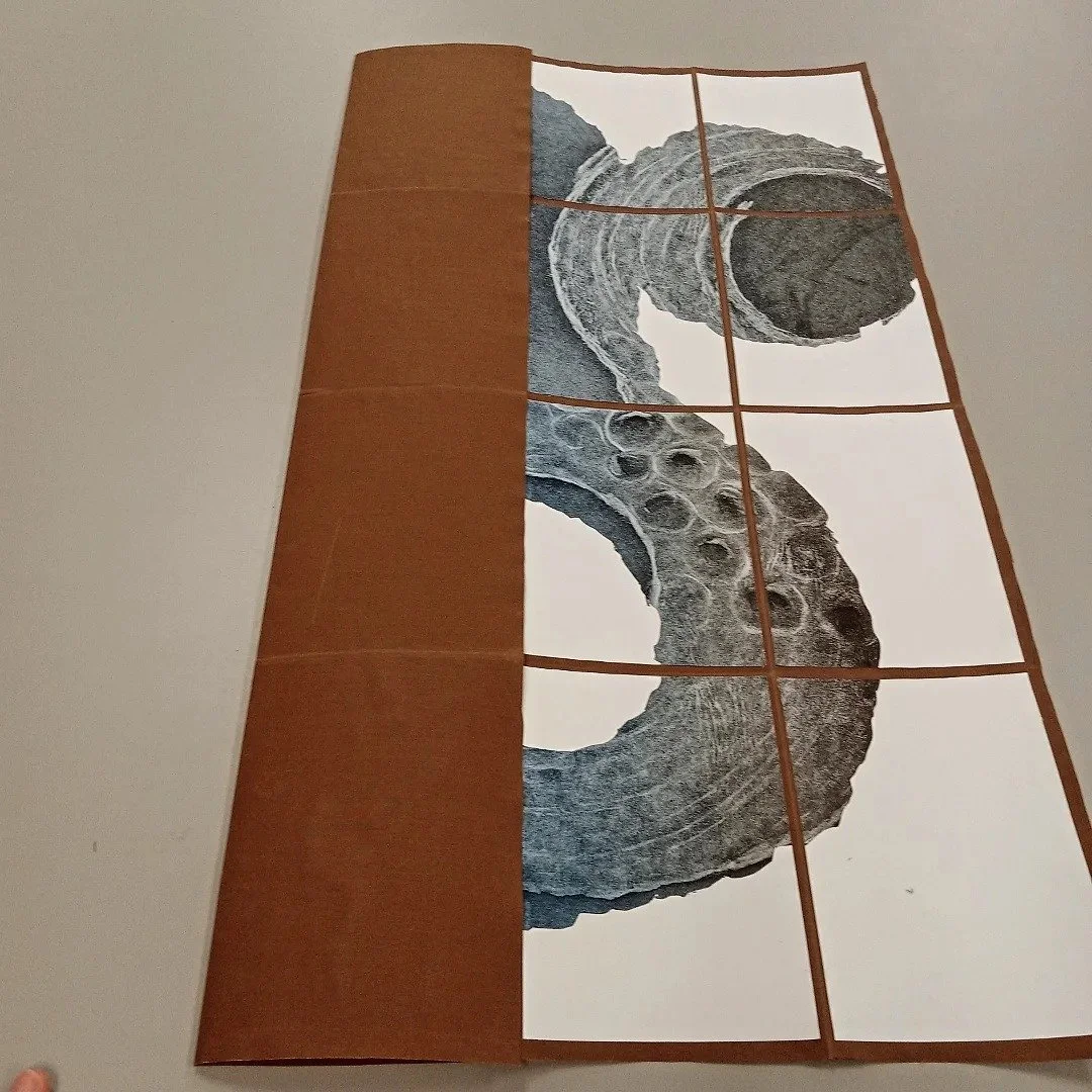 The record of human touch is possible in clay and in paper, but I also like to activate the audience’s sense of touch and movement through surface texture and by creating dynamic folded forms. When I am forming a sheet of paper, I sometimes draw into the loft of wet fiber, creating low-relief drawings. The papers are dimensional, with thin and thick areas that cast shadows in raking light and reveal transparency in the form or watermarks. The final dry form of the paper ultimately becomes a sculptural object with potential to be used in printmaking, installation art, sculpture, books, and more. Many of my thinner drawings have been used to create pressure prints, which then become folded maps. Images of my pressure printed maps are seen on this page.